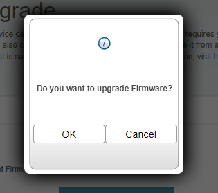 Step 9: Click the ‘Upload’ button, Click OK, then wait for the upgrade to occur.